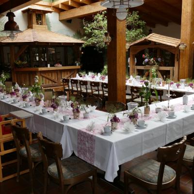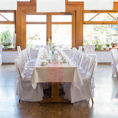 Lichtdurchflutet, hell und freundlich strahlt dieser Raum ein besonderen Flair aus und ist beliebt für Hochzeits- und größere Familienfeiern.
