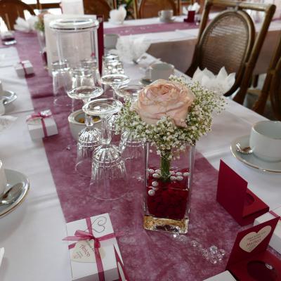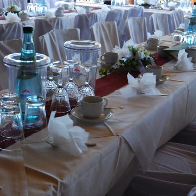 Geeignet für kleine und mittelgroße Familienfeiern. Die Wände sind gestaltet mit den 3 Burgen und Schlössern unserer Region.
