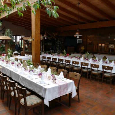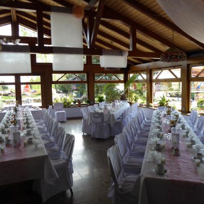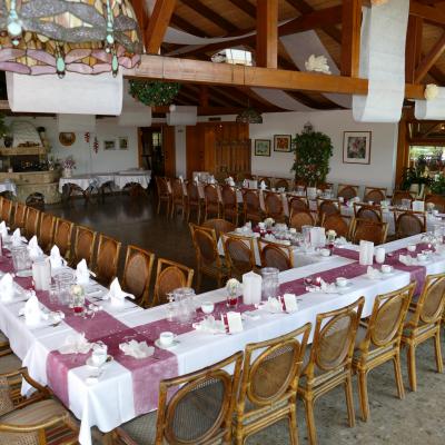 Lichtdurchflutet, hell und freundlich strahlt dieser Raum ein besonderen Flair aus und ist beliebt für Hochzeits- und größere Familienfeiern.